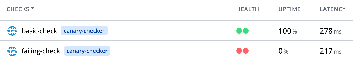 The canary checker itself only presents an API. To view the data graphically, the Flanksource UI is required, and is installed by default. The UI should be configured in values.yaml to allow external access via ingress